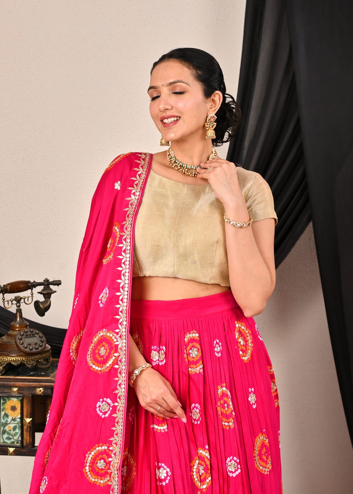Pure Gajji Silk Lehenga Set Gota- Patti Work.